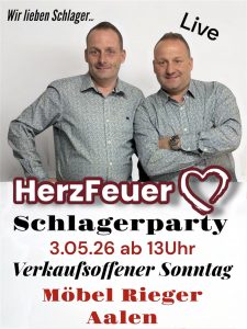 Verkaufsoffener Sonntag Möbel Rieger AalenVon user09125335394209 / 3. Mai 2026 Wann 3. Mai 2026 13:00 Zum Kalender hinzufügen ICS herunterladen Google Kalender iCalendar Office 365 Outlook LiveWo Möbel Rieger Aalen Daimlerstr. 9, Aalen, 73431, Aalen Karte nicht verfügbar